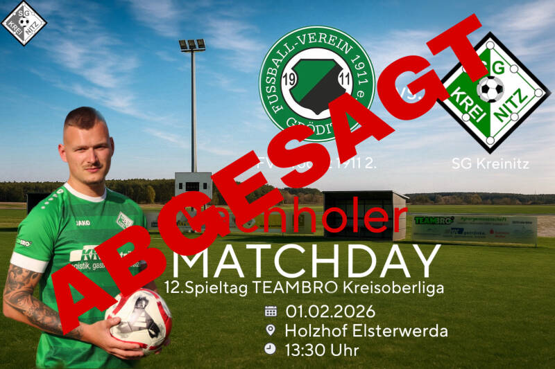 Das Spiel am Sonntag gegen den FV Gröditz 1912 wurde wegen Platzverhältnissen abgesagt.