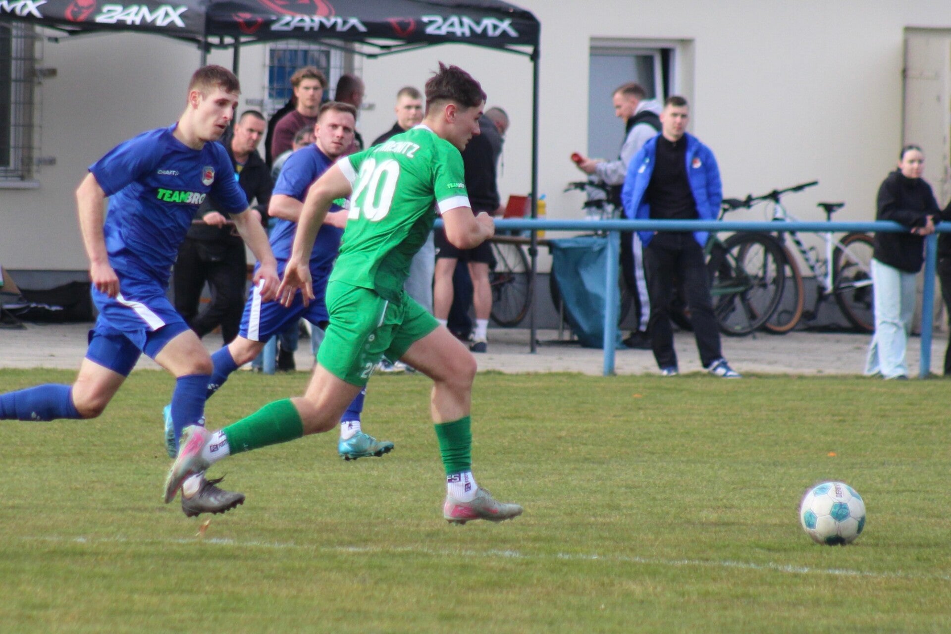 Vor der guten Kulisse von 226 Zuschauern kam aber nie so richtige Derbystimmung auf. Bei schwierigen Platzbedingungen hatten beide Mannschaften so ihre Probleme, entsprechend sehr überschaubar war auch das Niveau auf dem Rasen. Beide Teams offensiv eingestellt, versuchten von Beginn an Chancen zu erspielen. Die erste hatten die Gäste durch Anton Degenkolbe, der in einen zu kurz gespielten Rückpass lief und allein auf Roßmüller lief, der aber Sieger blieb. Sadowy probierte es aus der zweiten Reihe, schoss aber vorbei. Die Canitzer klar aktiver und die Hausherren hatten große Probleme im Aufbauspiel. Erst nach gut zwanzig Minuten sollten sich Chancen ergeben. Julius Jacobi per Kopf, ein Schuss von Luca Mitternacht oder ein direkter Freistoß von Toni Schurig. Gelegenheiten gab es, Tore nicht. Dominic Eichwald probierte es kurz vor der Pause noch einmal aus der Distanz, strammer Abschluss von der rechten Seite, aber auch dieser Abschluss ging am Tor vorbei.